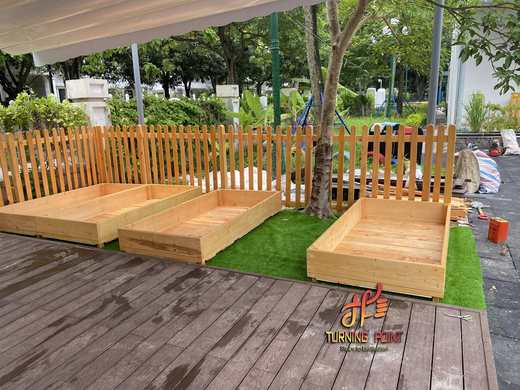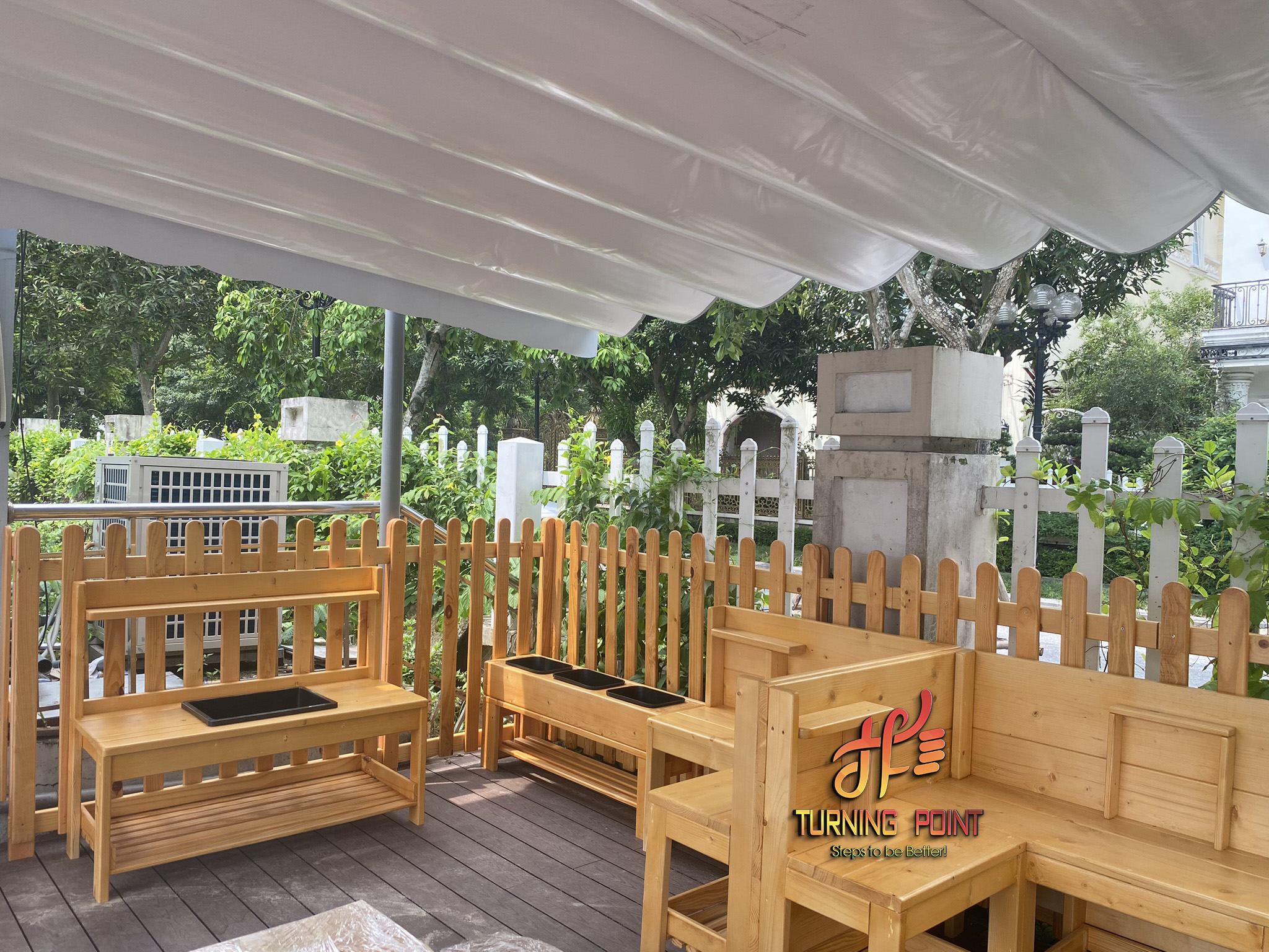Công ty Turning Point hân hạnh được Ban giám hiệu trường tin tưởng giao cho cung cấp lắp đặt mái che thép, khu vui chơi trong nhà, đồ chơi bằng gỗ tại Long Biên, Hà Nội.