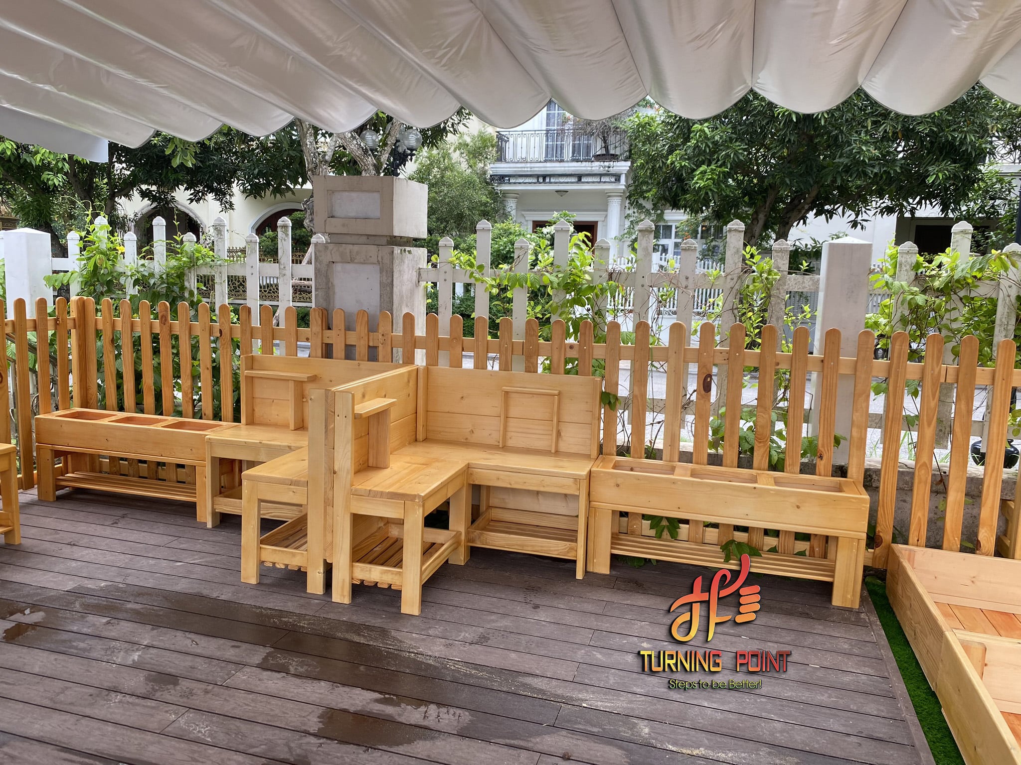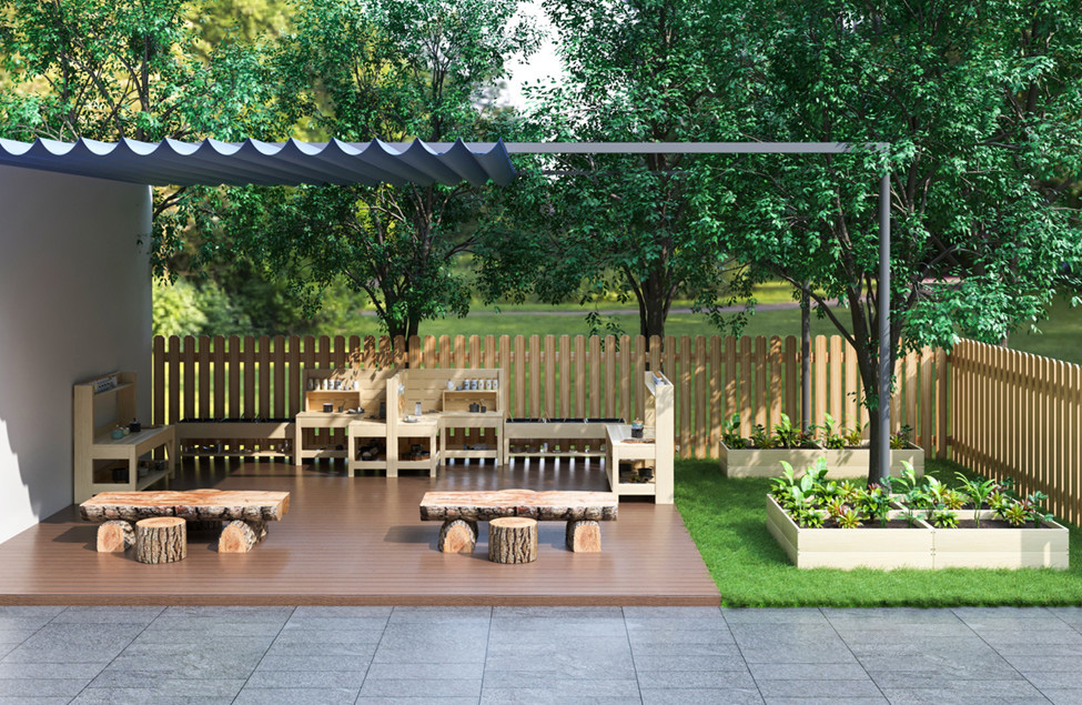 - Hạng mục cung cấp: Mái che thép, khu vui chơi trong nhà, đồ chơi bằng gỗ.