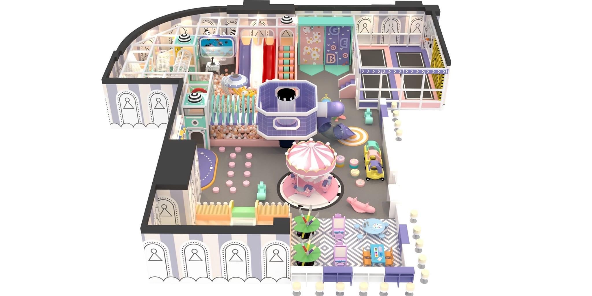 Các trò chơi thường có trong thiết kế: Khu nhà liên hoàn; Bể bóng khổng lồ; Trò chơi bắn bóng; Trò chơi leo trèo vượt chướng ngại vật; trò chơi vận động; trò chơi leo dây; trò chơi câu cá; Trò chơi vật lý; Trò chơi tô tượng vẽ tranh; Trò chơi bảng thông minh; Trò chơi phao hơi; Cầu trượt khổng lồ; Trò chơi âm nhạc; trò chơi cầu trượt loa; … và nhiều trò chơi hấp dẫn cập nhật liên tục theo xu hướng. với các phân khu hấp dẫn như: Lâu đài Kẹo Ngọt Liên Hoàn; Hồ Bóng Cupcake Khổng Lồ; Cầu Trượt Kem Xoắn Ốc; Tiệm Bánh của Công Chúa; Góc Sáng Tạo Kẹo Sắc Màu; Đu Quay Kẹo Bông; Vườn Kẹo Mini..