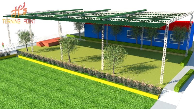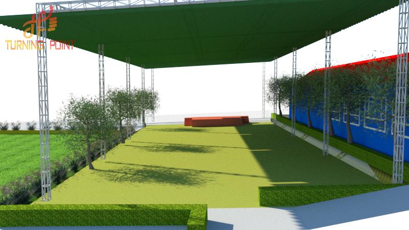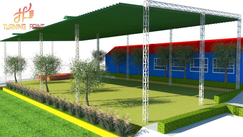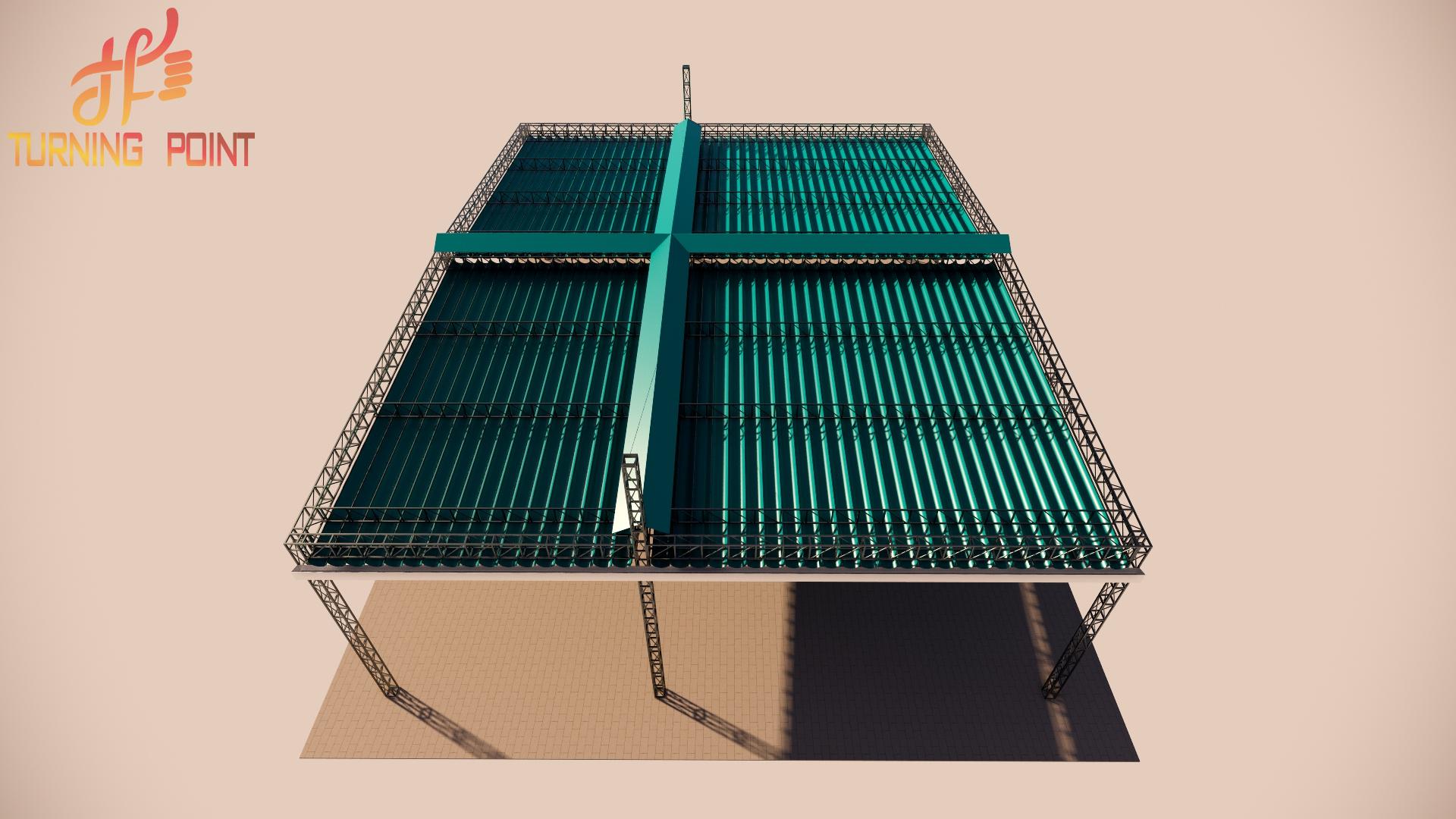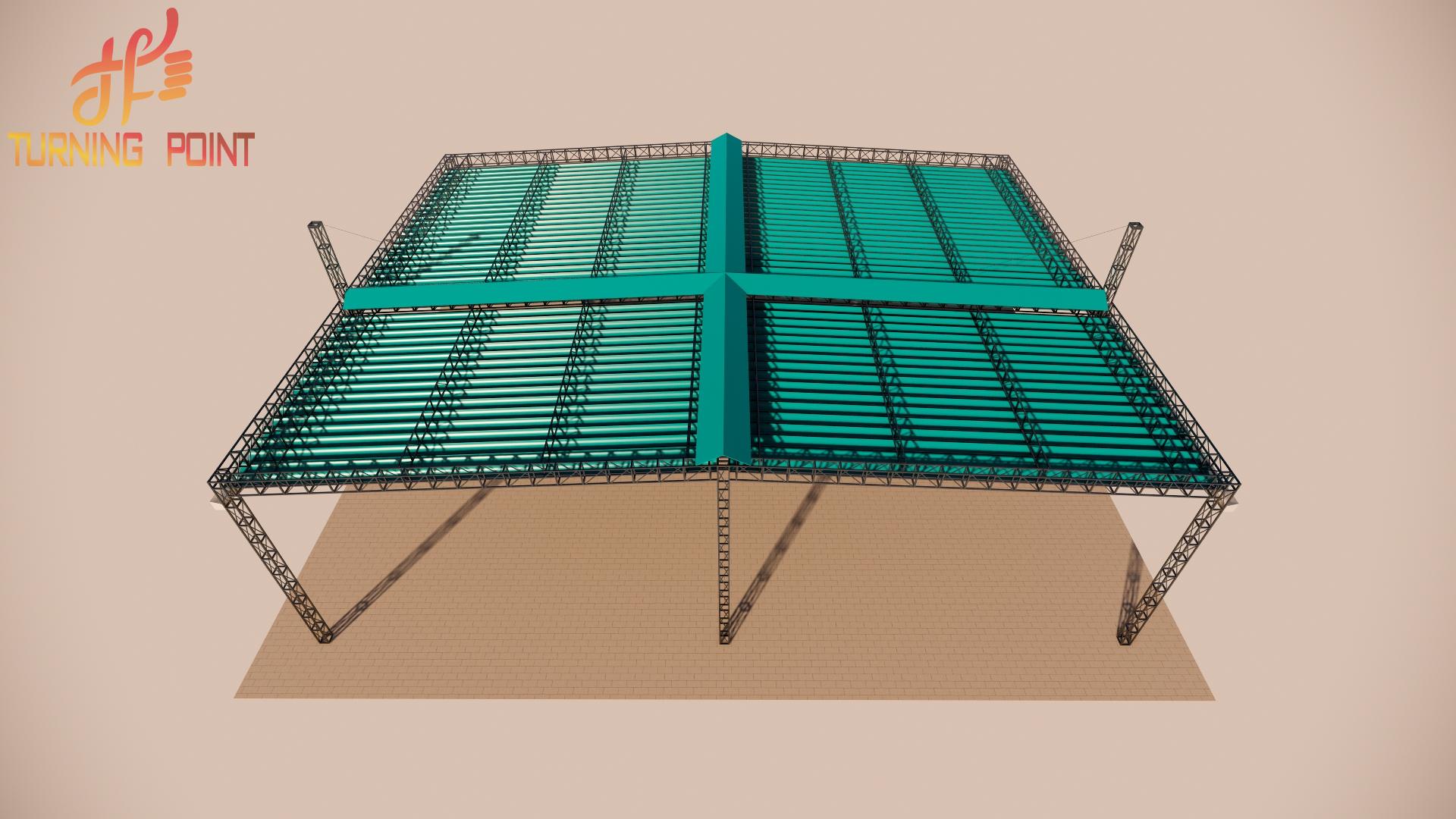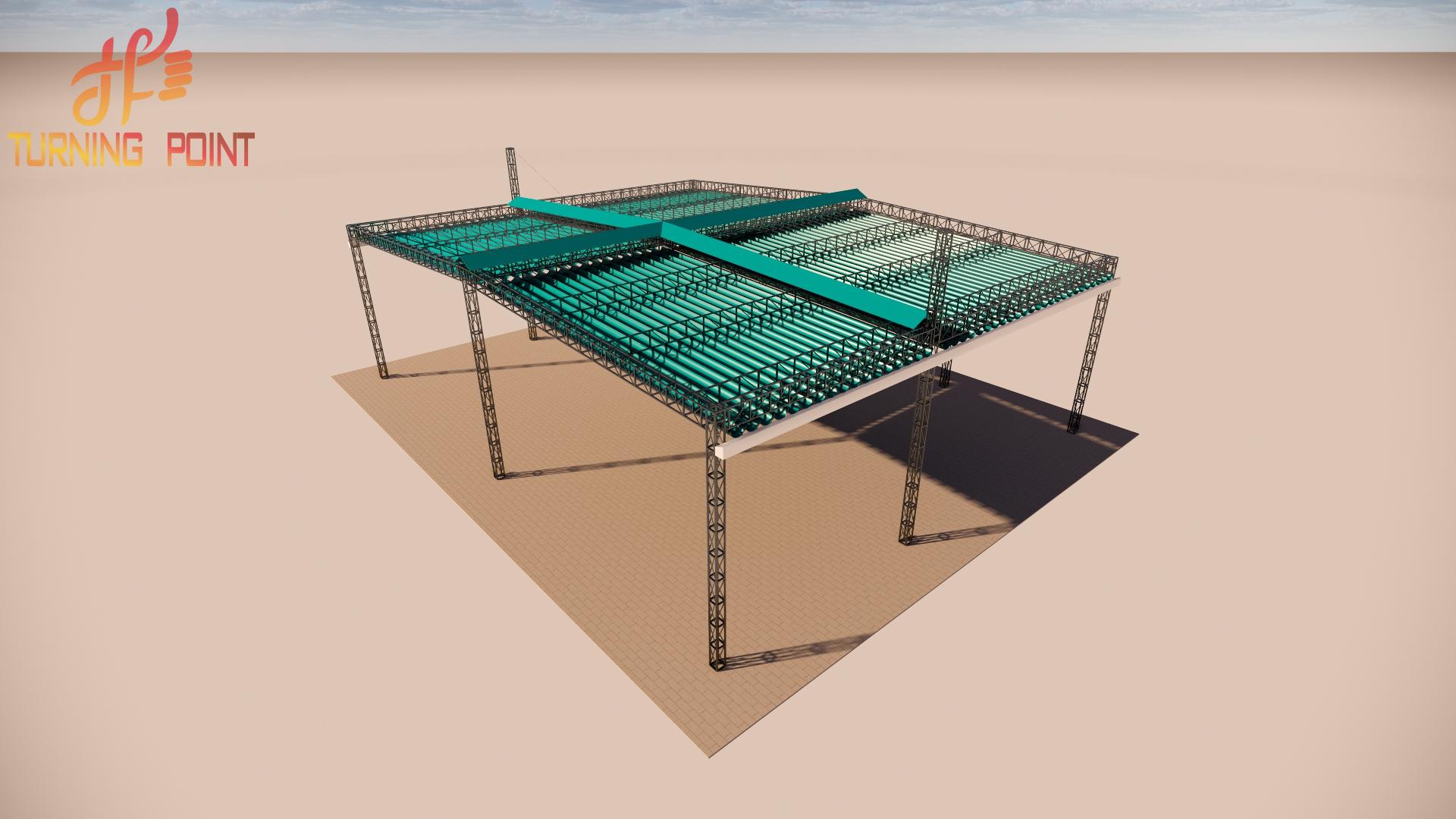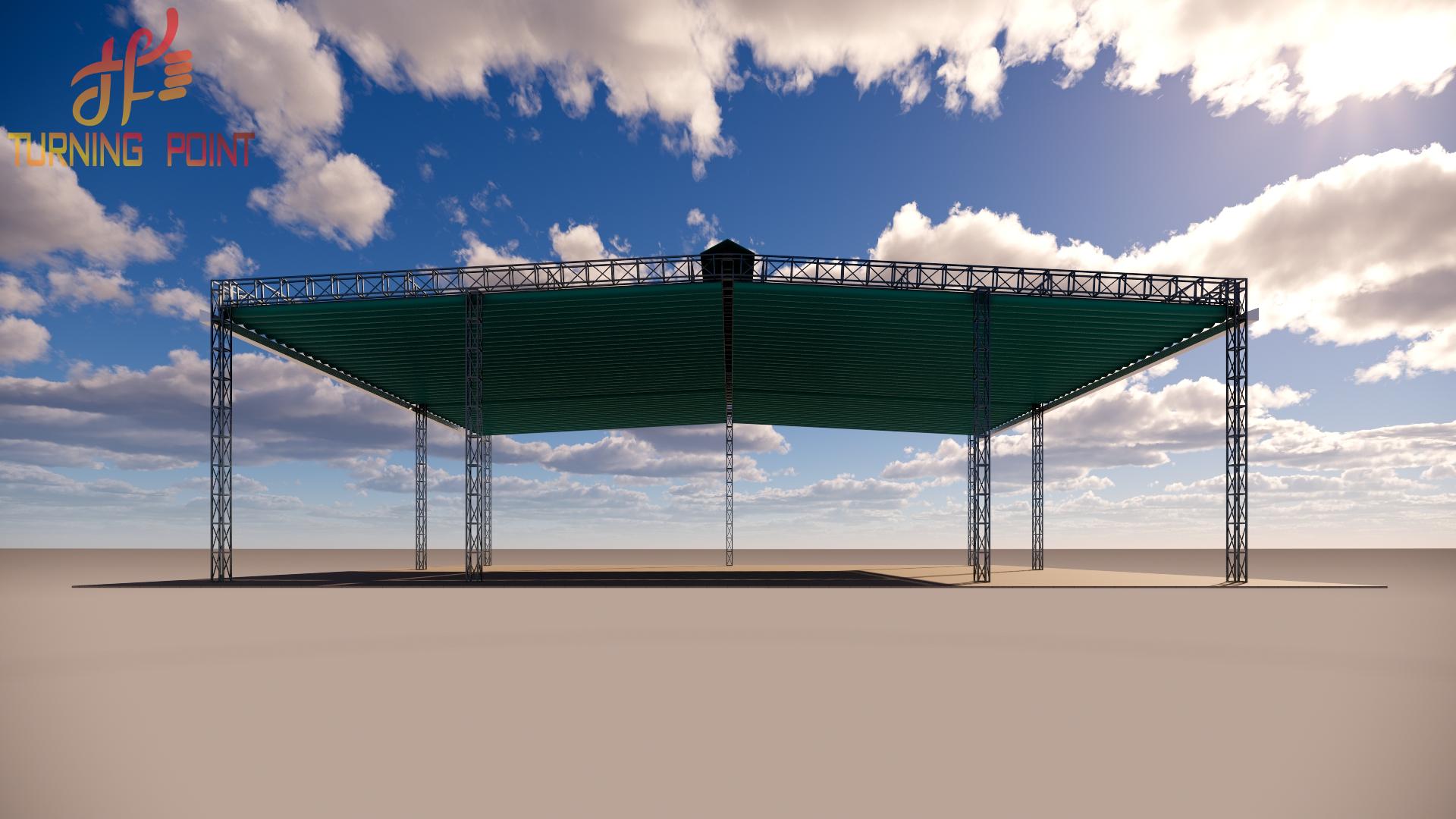Chất liệu khung: Thép hộp mạ kẽm/ sơn tĩnh điện chắc chắn, chống gỉ sét, chịu lực tốt. Với nhu cầu cao cấp có thể sử dụng chất liệu là Truss nhôm làm hệ khung.