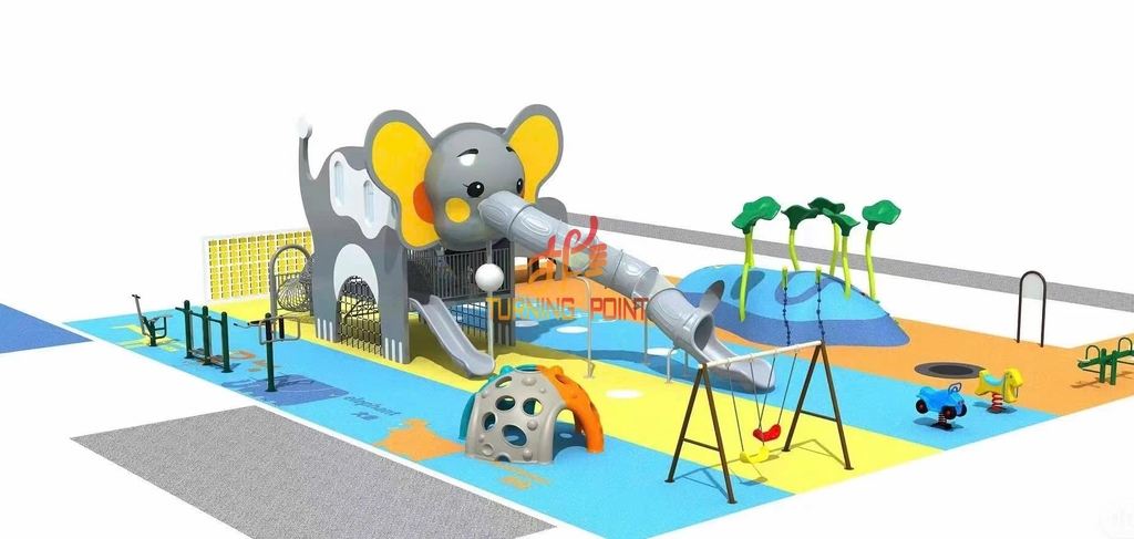 Mô tả sản phẩm: Với thiết kế hình chú voi khổng lồ cực kỳ dễ thương, là trung tâm thu hút mọi ánh nhìn của trẻ nhỏ. Hệ thống cầu trượt đôi được tích hợp ngay từ thân và vòi voi tạo nên cảm giác vừa lạ mắt vừa thú vị. Không gian xung quanh còn được bổ sung nhiều trò chơi vận động như xích đu, leo núi mô phỏng, thú nhún và khu địa hình mềm cho trẻ leo trèo an toàn.