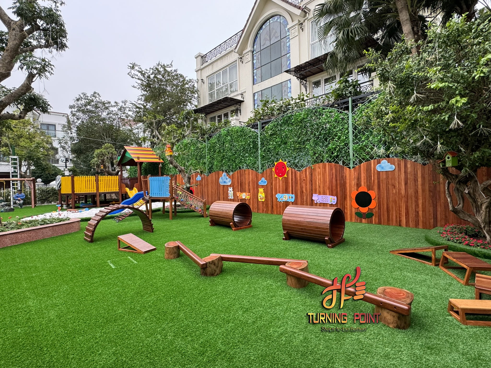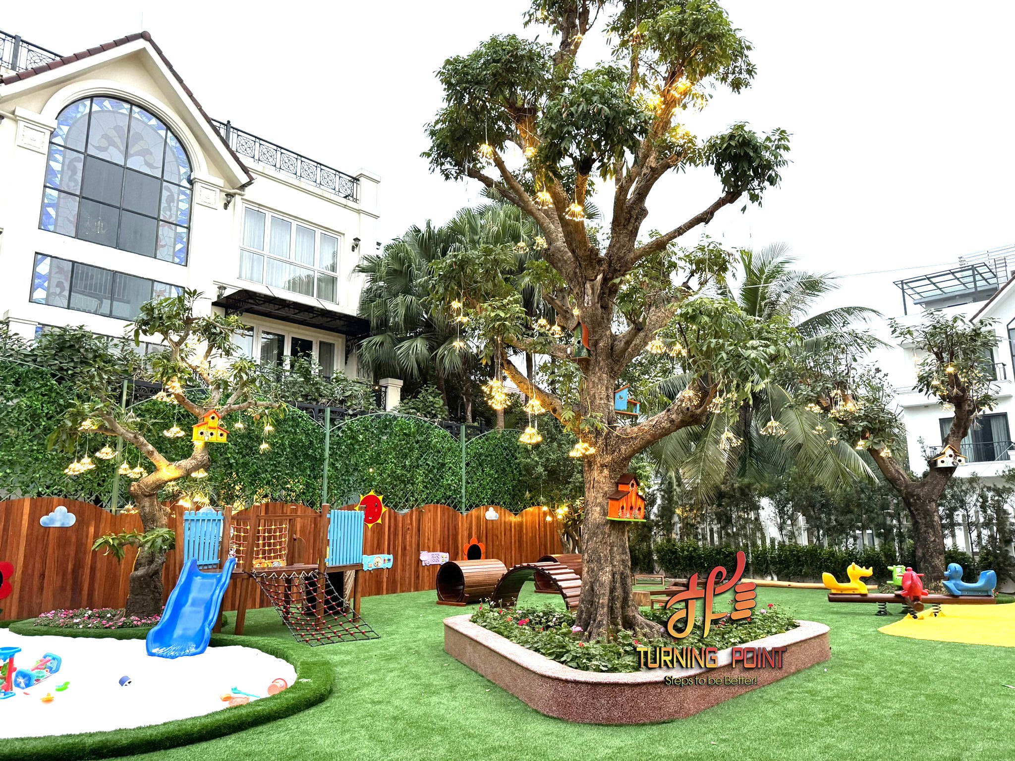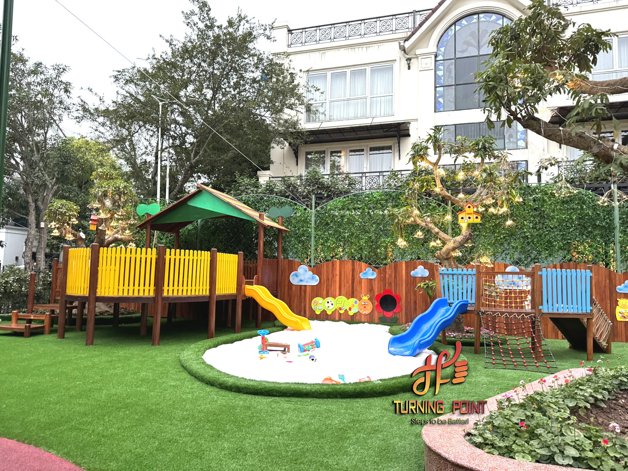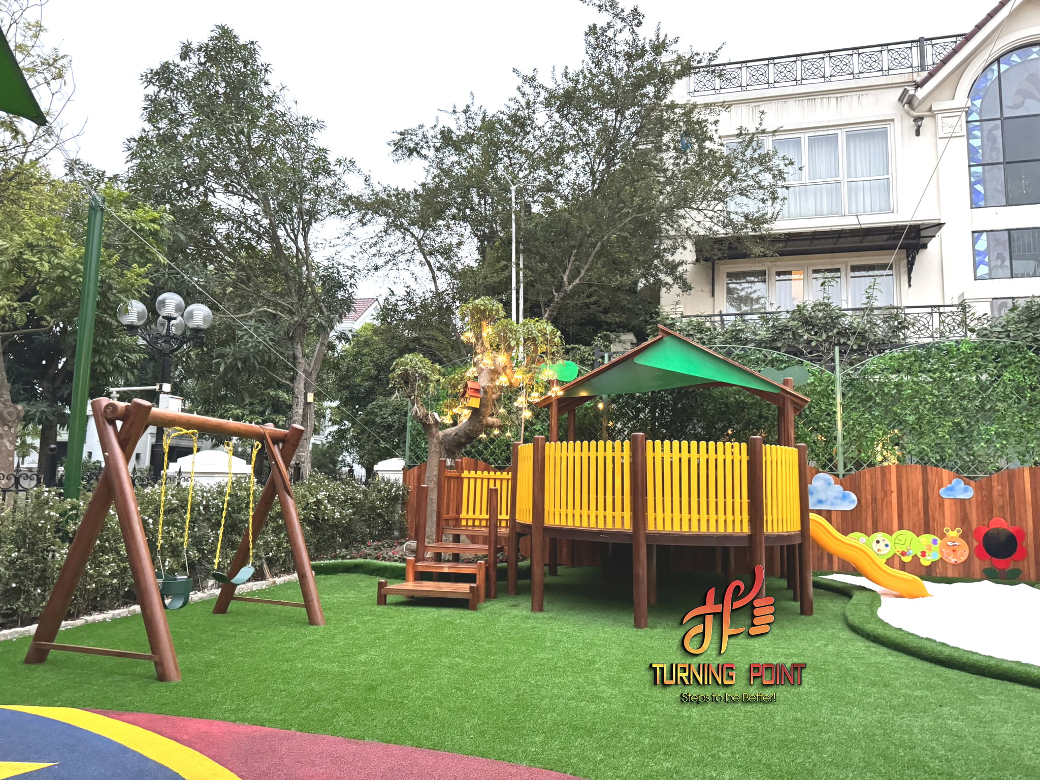 Công ty Turning Point hân hạnh được gia chủ tin tưởng giao cho thi công, cải tạo và lắp đặt sân chơi cho trẻ em bao gồm sàn EDPM, đồ chơi gỗ, đu quay, bạt che ngoài trời...