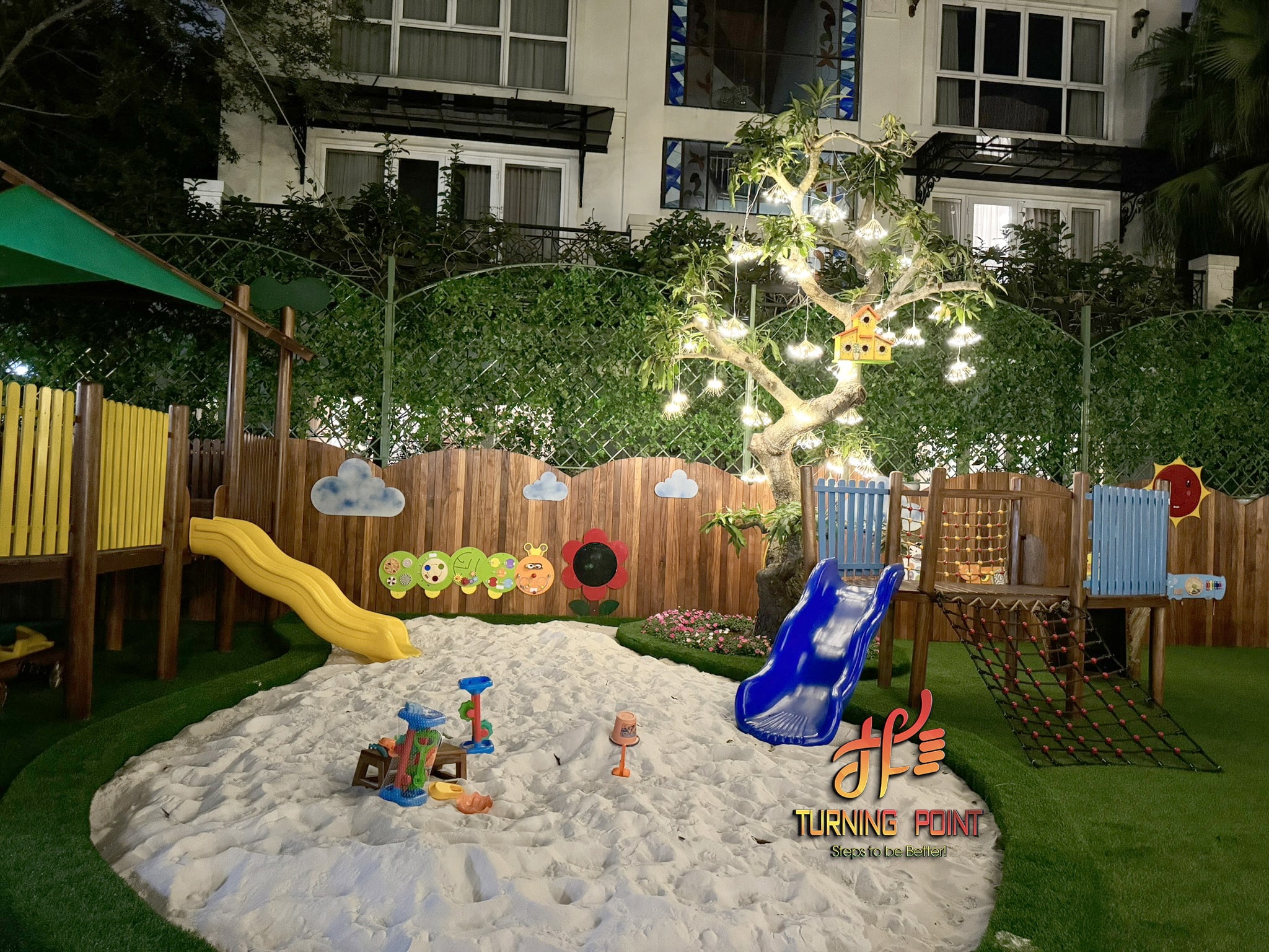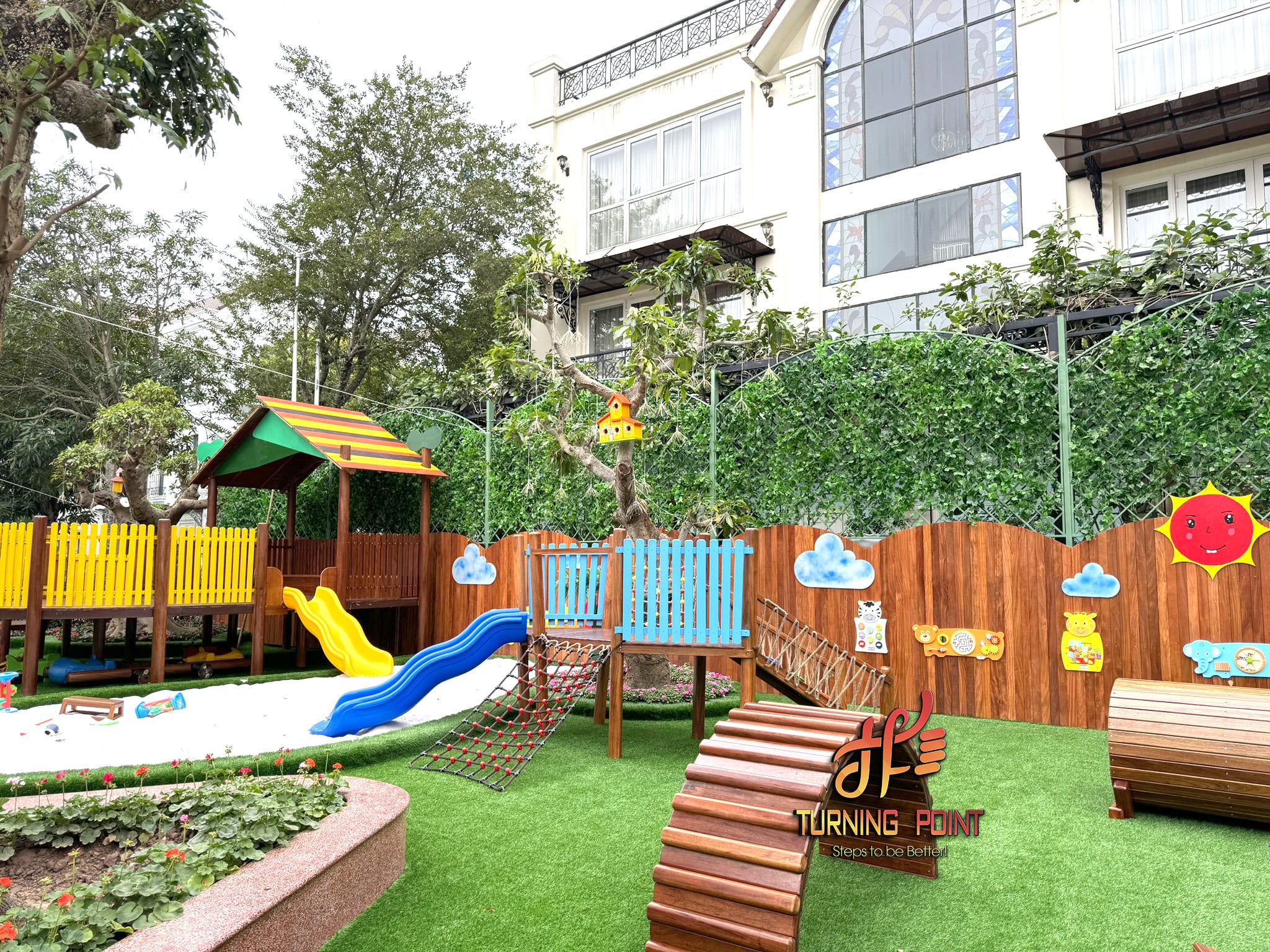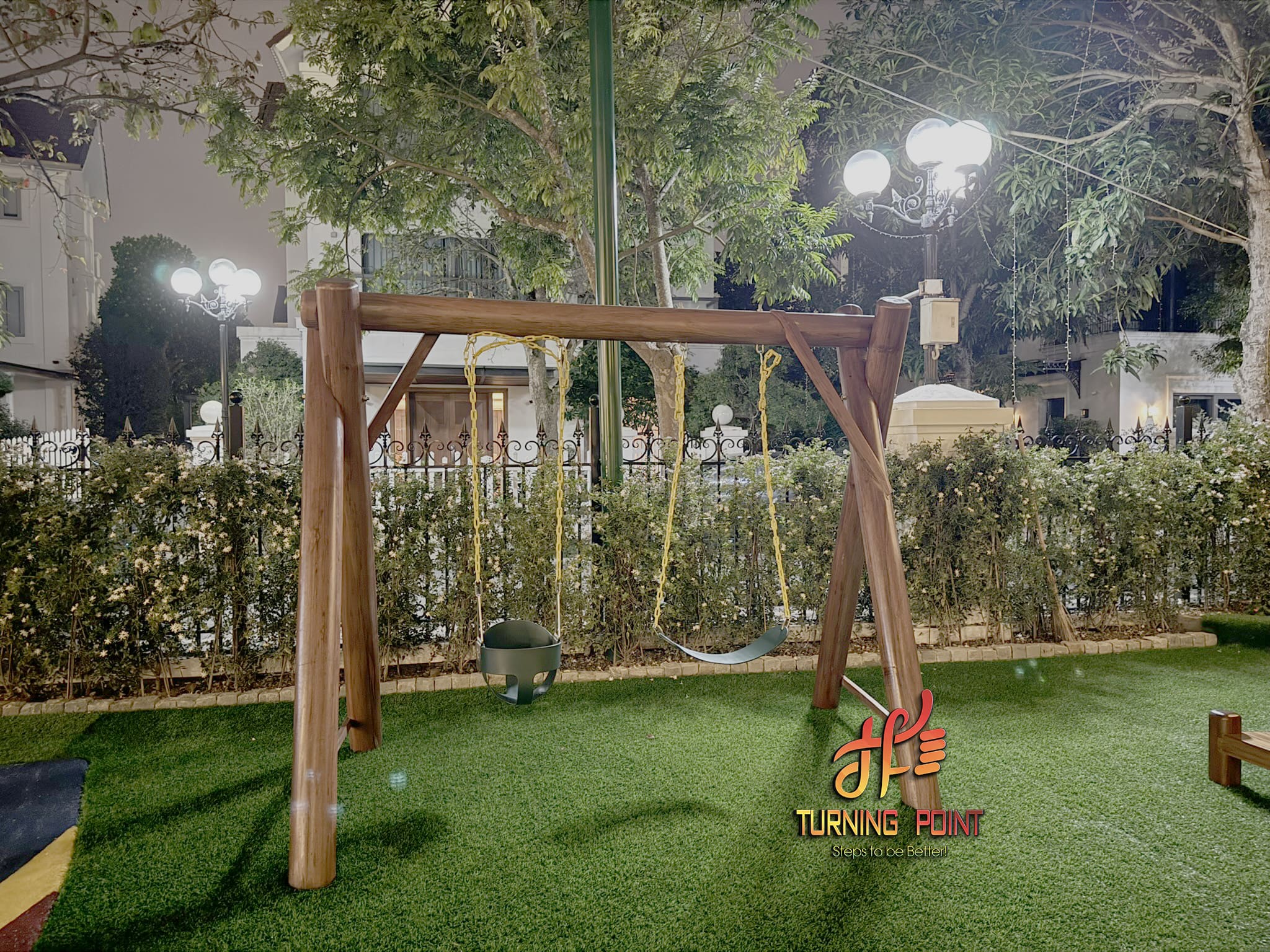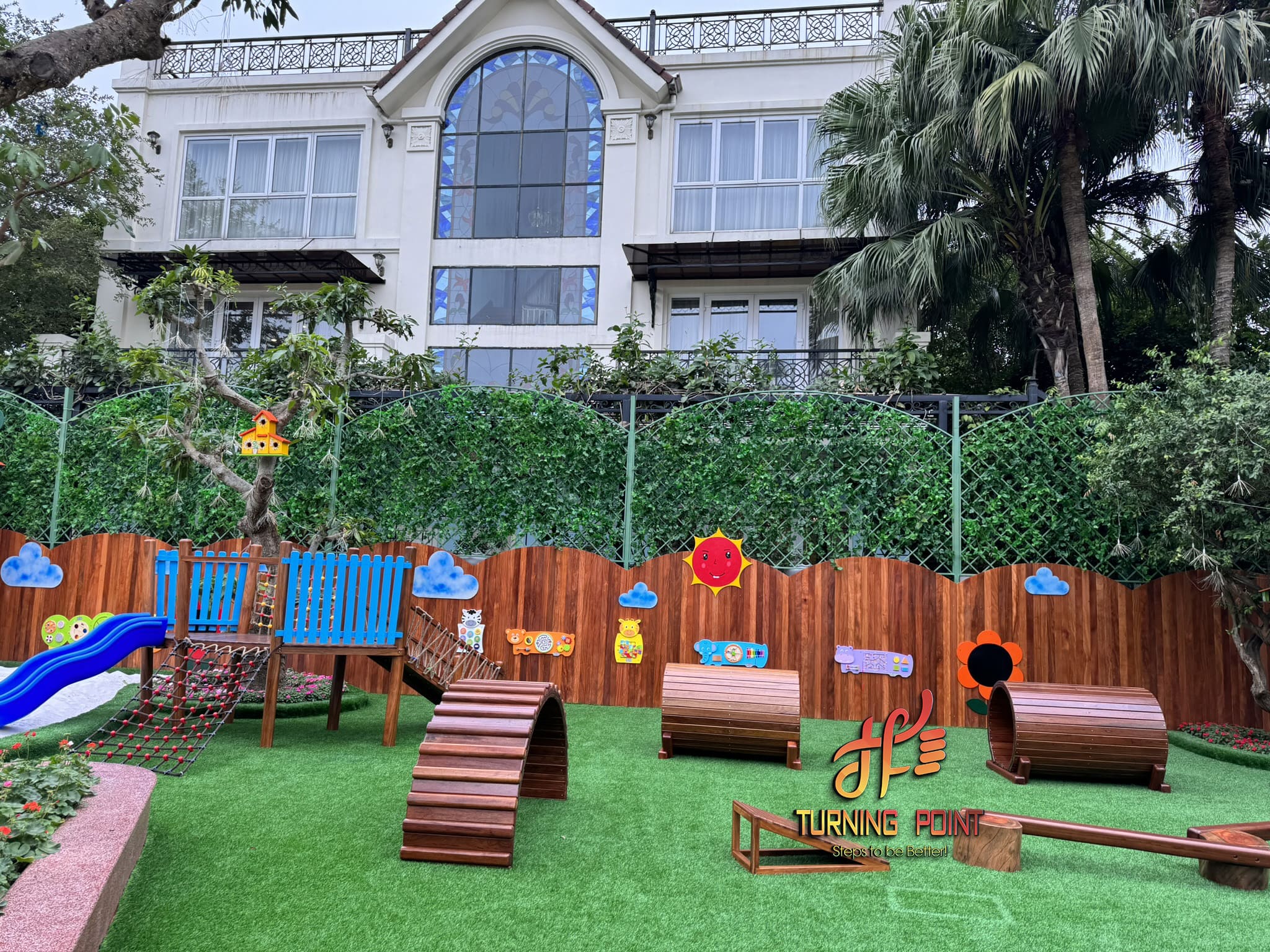 Công ty Turning Point hân hạnh được gia chủ tin tưởng giao cho thi công, cải tạo và lắp đặt sân chơi cho trẻ em bao gồm sàn EDPM, đồ chơi gỗ, đu quay, bạt che ngoài trời...