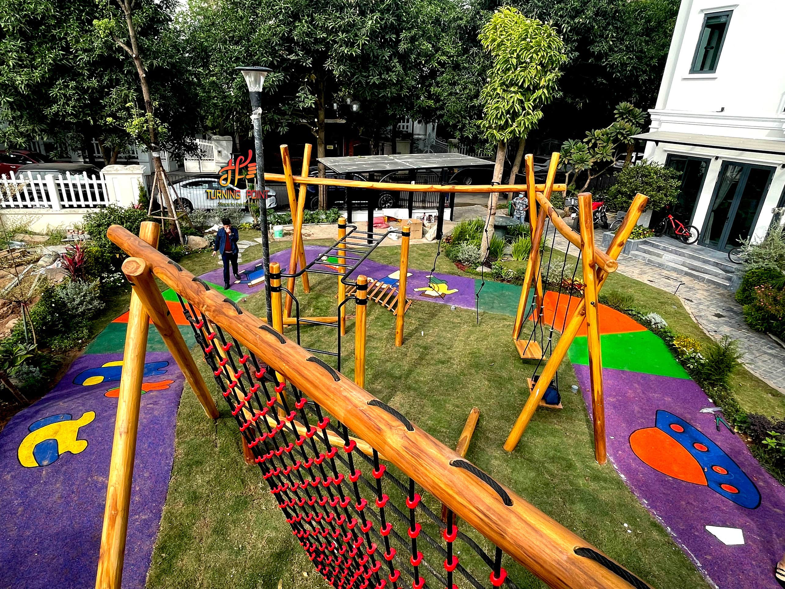Công ty Turning Point hân hạnh được gia chủ tin tưởng giao cho thi công, cải tạo và lắp đặt sân chơi cho trẻ em bao gồm sàn EDPM, đồ chơi gỗ, đu quay, bạt che ngoài trời...