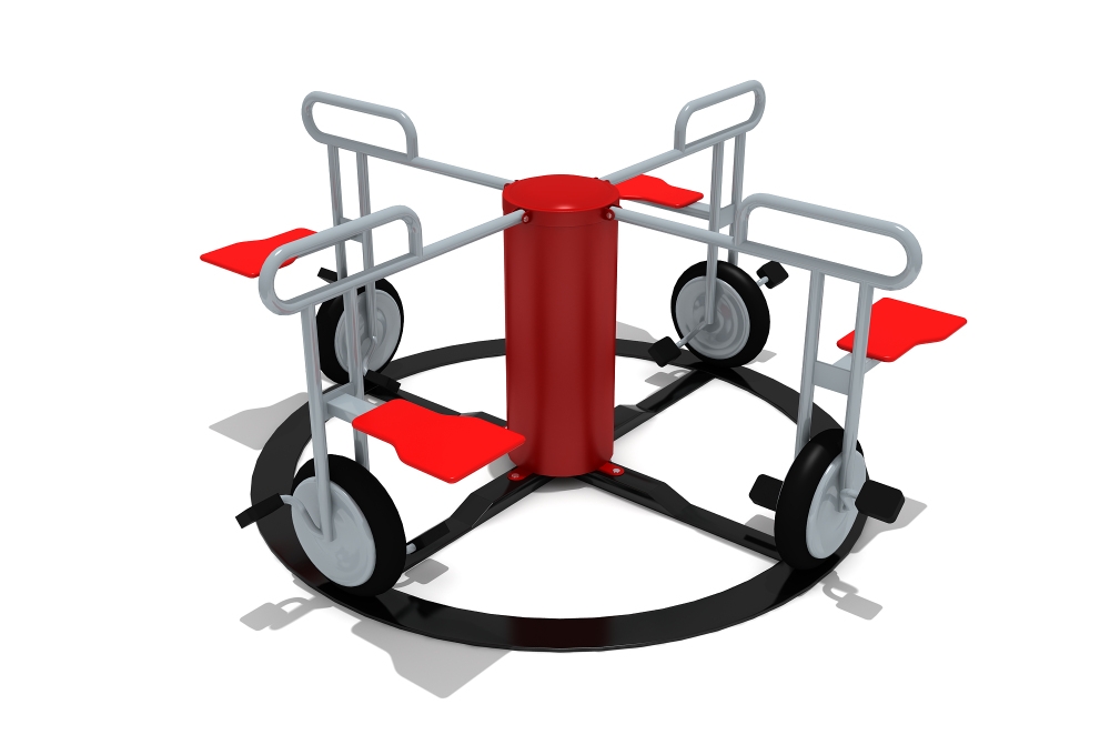 Vật liệu: Tạo hình bằng hệ khung thép mạ kẽm nhúng nóng sơn tĩnh điện, ghế ngồi bằng nhựa HDPE hoặc nhựa LDPE đúc tạo hình hoặc tạo hình bằng thép nghệ thuật theo thiết kế; Đu quay có trụ quay 360 độ tạo cảm giác phiêu lưu khi trẻ vui chơi; Đế đu quay được chôn âm hoặc liên kết với nền bê tông hiện hữu chất lượng cao.