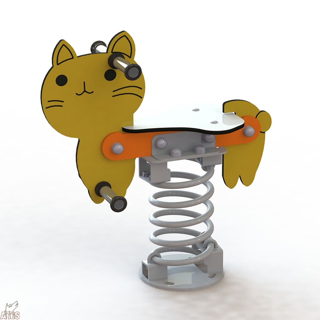 Vật liệu: Nhựa cao cấp HDPE 17-19mm siêu bền bỉ cắt CNC tạo hình các con vật ngẫu nhiên bằng công nghệ cao, gắn các họa tiết trang trí để làm sinh động cho trò chơi; Lò xo được làm bằng thép đặc mạ kẽm phủ sơn tĩnh điện chất lượng cao. Lò xo được làm sạch bằng cách phosphat hóa trước khi được sơn bằng lớp sơn lót epoxy và lớp phủ bột polyester làm lớp hoàn thiện. Lò xo được cố định bằng các phụ kiện chống kẹp độc đáo để có sự an toàn tối đa và tuổi thọ lâu dài. Đế lò xo liên kết với nền bê tông bằng bu lông nở chắc chắn.